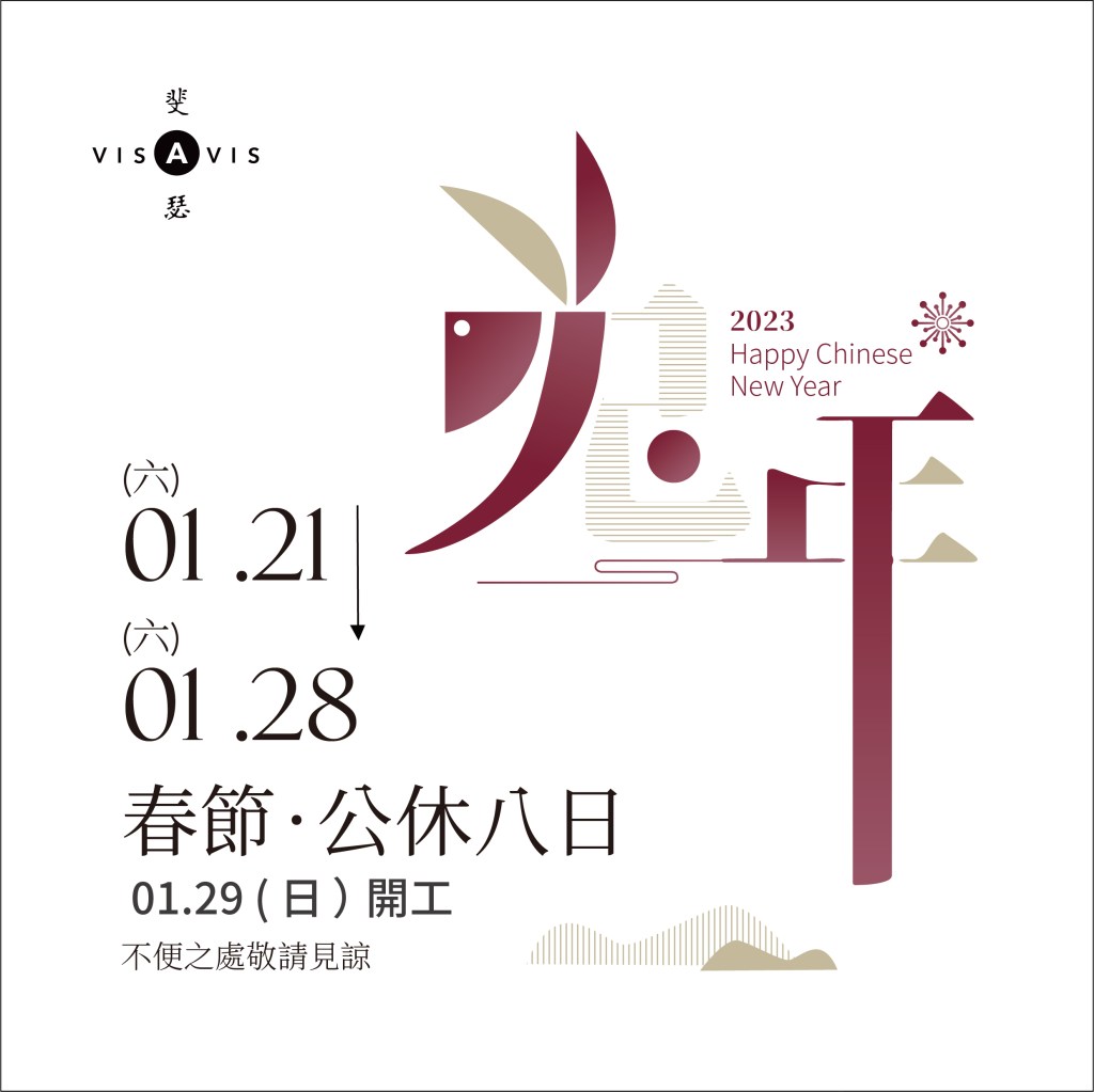 1/21(六)除夕~1/28(六)初七 斐瑟春節公休8日,