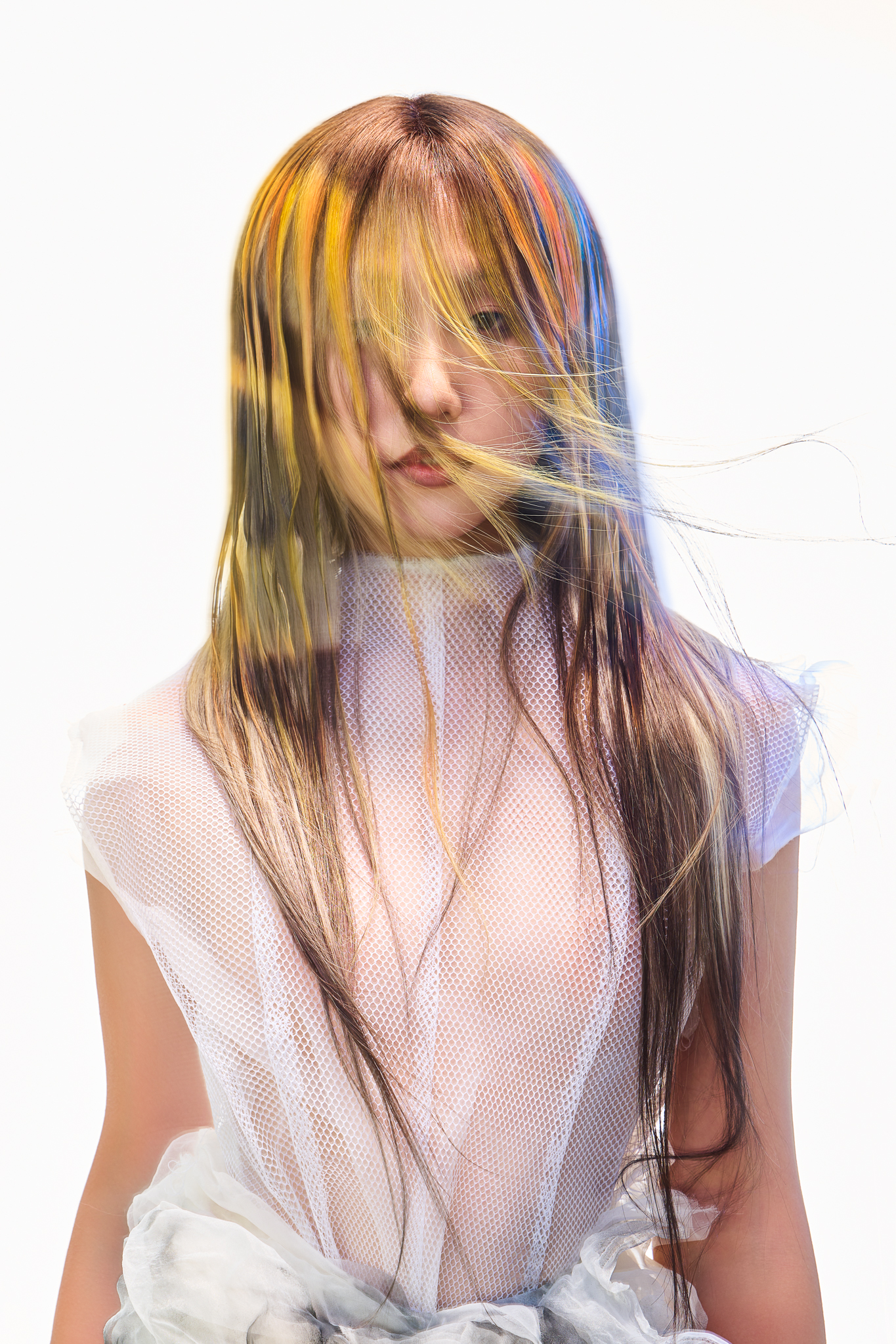 The hair becomes an electric current, flowing with vitality,